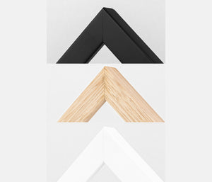 • A2, A1 & A0 paper prints are framed in a 30mm frame with an acid-free white mat board and 2mm clear glass.